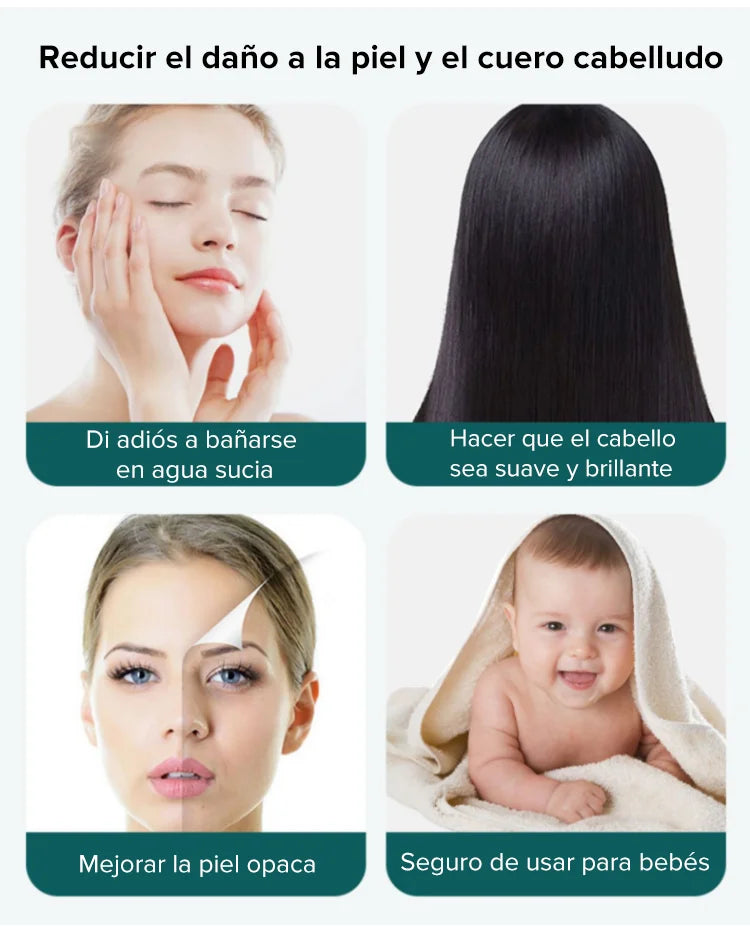 El cartucho (PP/algodón comprimido) ayuda a retener sedimentos finos, óxido y arenilla que opacan la piel y el cabello. La duración depende del agua de tu zona: 2 a 3 meses en uso diario promedio (verás el filtro pasar de blanco a beige/marrón: es la señal de cambio).