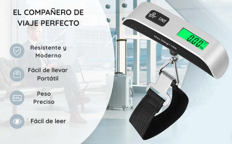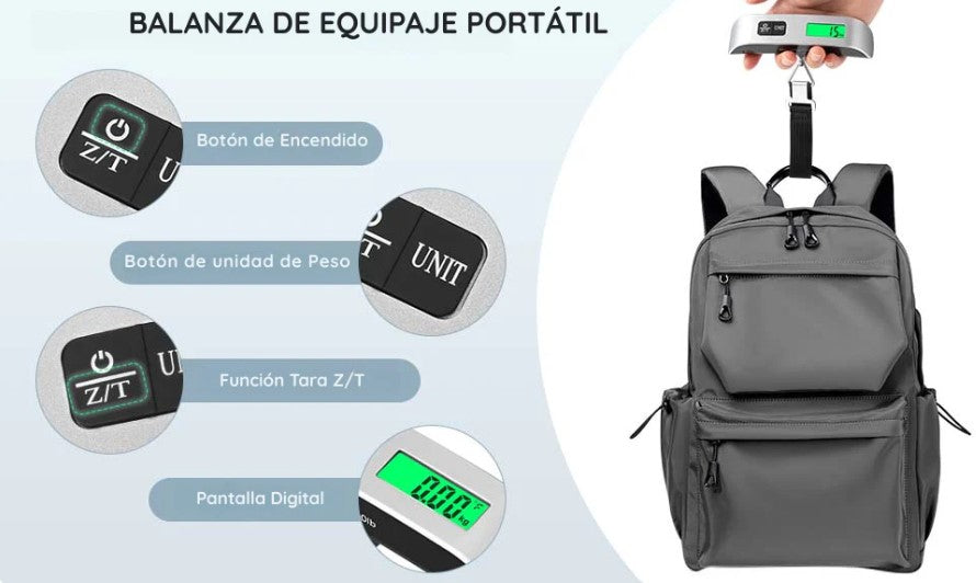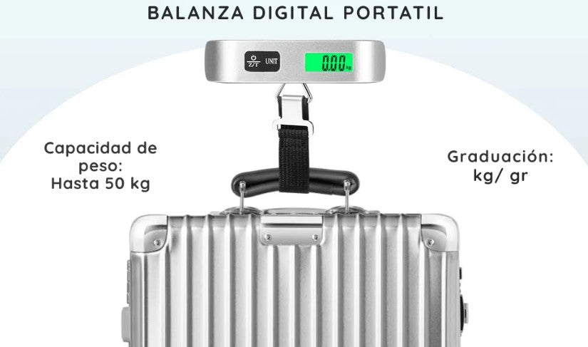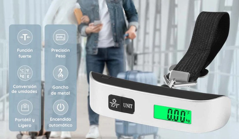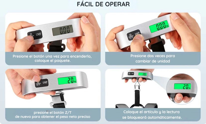 Balanza de mano en forma de T - Capacidad máxima de 50 kg, precisión de 0,1 g, medición de peso en 3 pasos, balanza portátil para viajes con correa ajustable y bolsa de transporte para equipaje, compras, entrega expresa, balanza de equipaje, diseño compacto, cuerpo de plástico duradero✨✈️