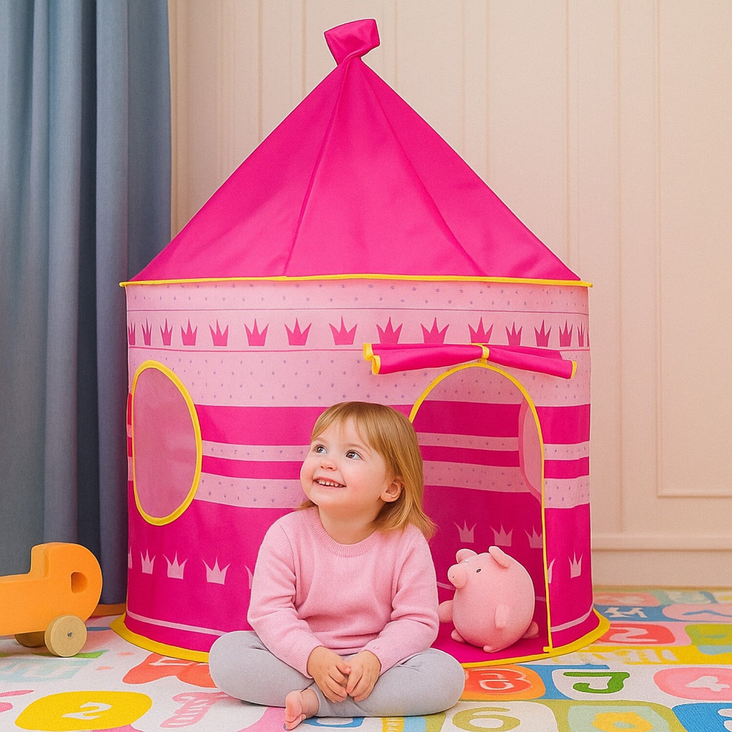 Está fabricado en tafetán de poliéster grueso, resistente y lavable, con varillas flexibles de plástico o fibra de vidrio cubiertas. Es liviano, ventilado y no tóxico, pensado para ofrecer un espacio seguro y cómodo para los pequeños. Las ventanas de malla ayudan a mantener el interior fresco y visible.