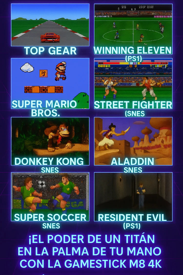 Un solo dispositivo con títulos de los 80, 90 y 2000, listos para disfrutar con tu familia, tus hijos o tus amigos.